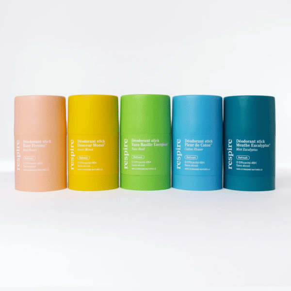Respire dezodorantai sukurti Prancūzijoje, naudojant natūralios kilmės ingredientus, kurie užtikrina veiksmingą apsaugą nuo nemalonaus kvapo, išlaikant odos komfortą ir švelnumą. Formulė be aliuminio druskų, be alkoholio, be parabenų, todėl tinka net jautriai odai.